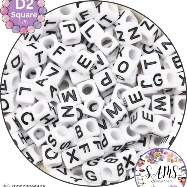 Square White Alphabet Letter Beads Black Background For Jewelry Making, Bracelet Making Accessories Buy Online in Pakistan at SAMS SUPPLIES in Wholesale Prices