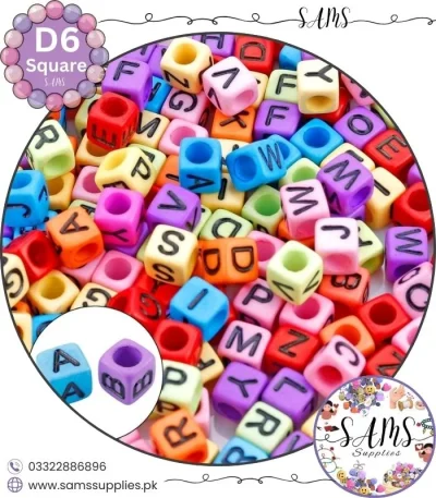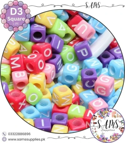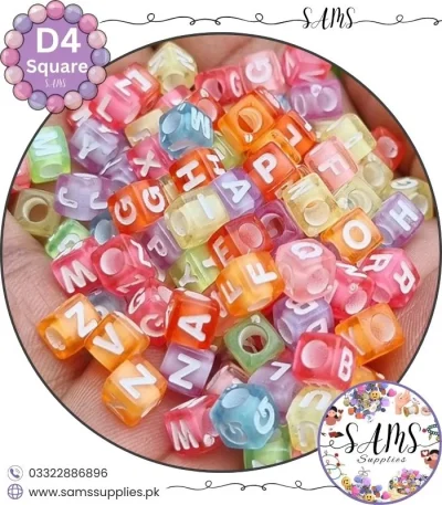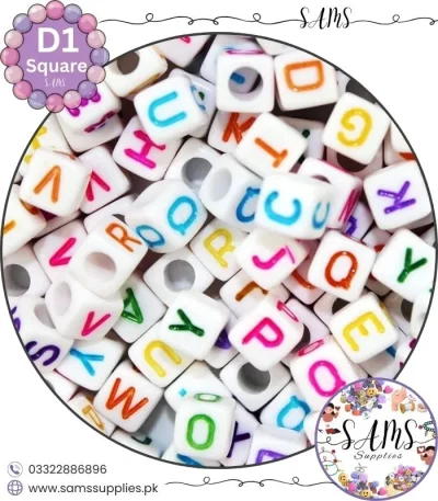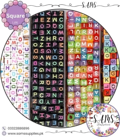 Square White Alphabet Letter Beads Multicolor Background For Jewelry Making, Bracelet Making Accessories Buy Online in Pakistan at SAMS SUPPLIES in Wholesale Prices.