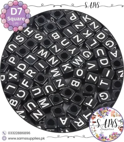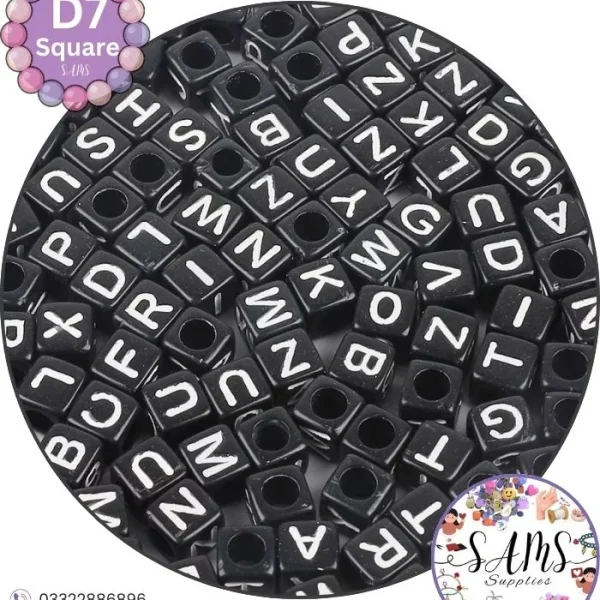 Square Black Alphabet Letter Beads White Background For Jewelry Making, Bracelet Making Accessories Buy Online in Pakistan at SAMS SUPPLIES in Wholesale Prices.