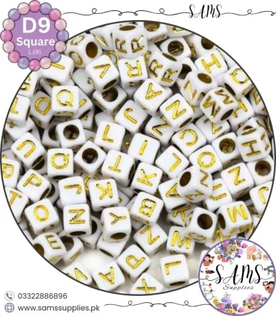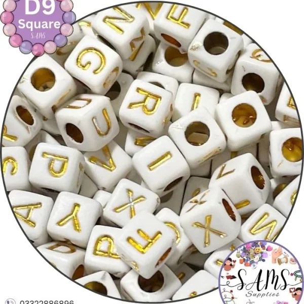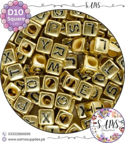 Square Golden Alphabet Letter Beads White Background For Jewelry Making, Bracelet Making Accessories Buy Online in Pakistan at SAMS SUPPLIES in Wholesale Prices