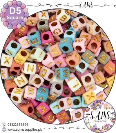 Square Golden Alphabet Letter Beads Multicolor Background For Jewelry Making, Bracelet Making Accessories Buy Online in Pakistan at SAMS SUPPLIES in Wholesale Prices