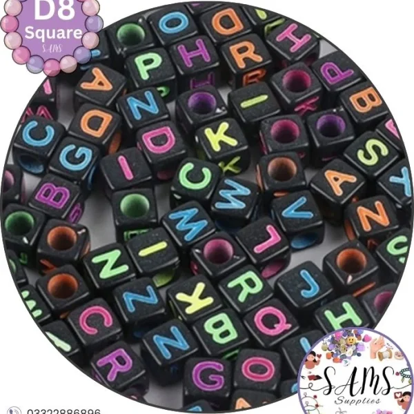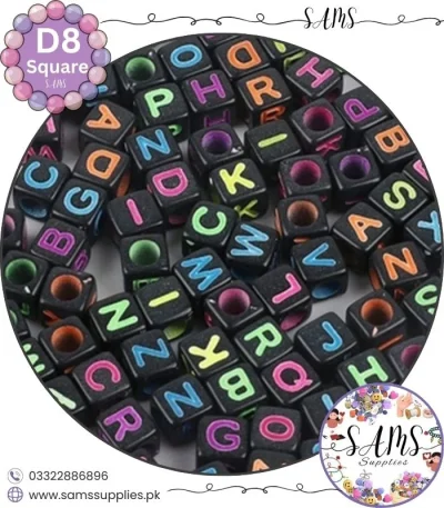 Square Multicolor Alphabet Letter Beads Black Background For Jewelry Making, Bracelet Making Accessories Buy Online in Pakistan at SAMS SUPPLIES in Wholesale Prices