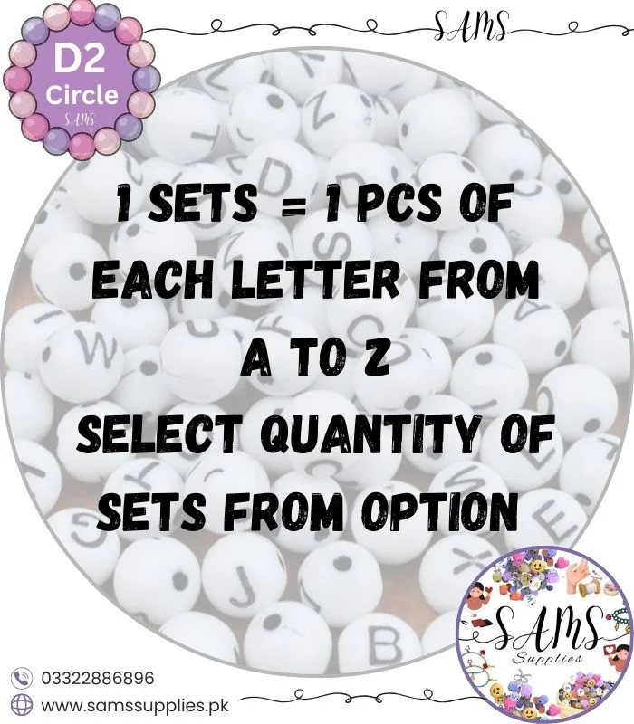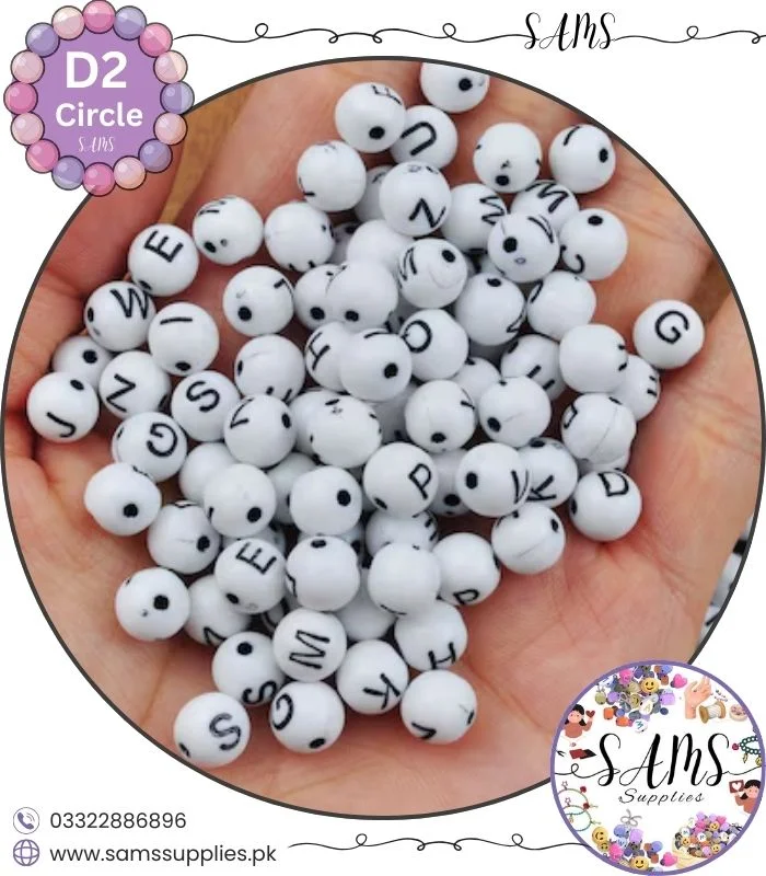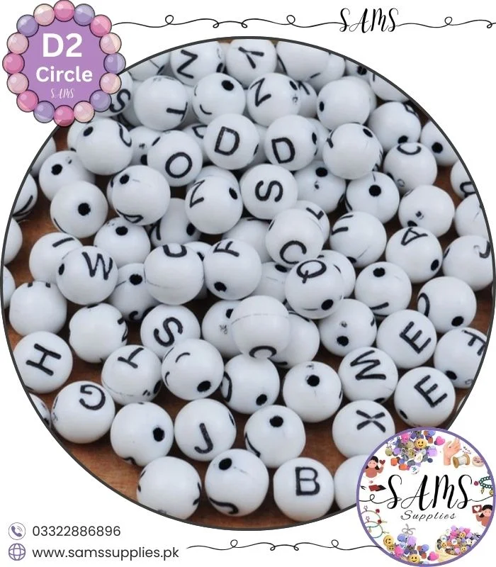 Circle Black Alphabet Letter Beads White Background For Jewelry Making, Bracelet Making Accessories Buy Online in Pakistan at SAMS SUPPLIES in Wholesale Prices
