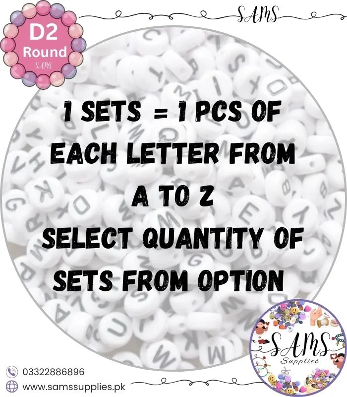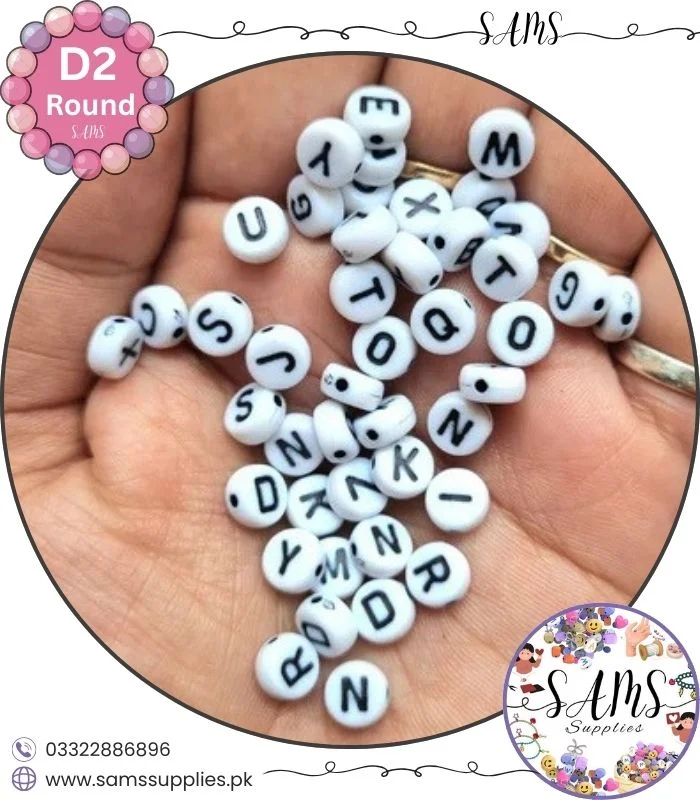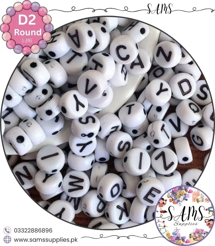Circle Black Alphabet Letter Beads White Background For Jewelry Making, Bracelet Making Accessories Buy Online in Pakistan at SAMS SUPPLIES in Wholesale Prices