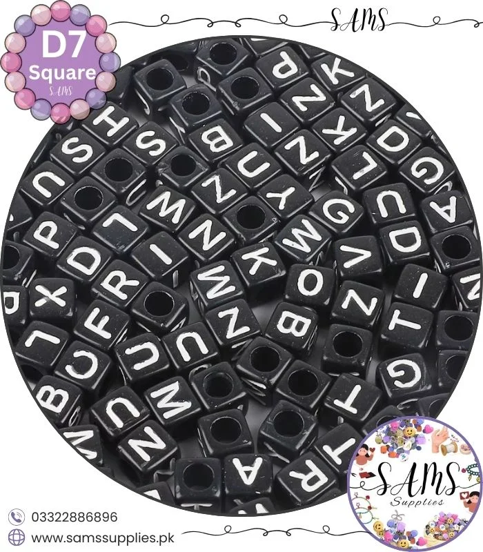 Square White Alphabet Letter Beads Black Background For Jewelry Making, Bracelet Making Accessories Buy Online in Pakistan at SAMS SUPPLIES in Wholesale Prices