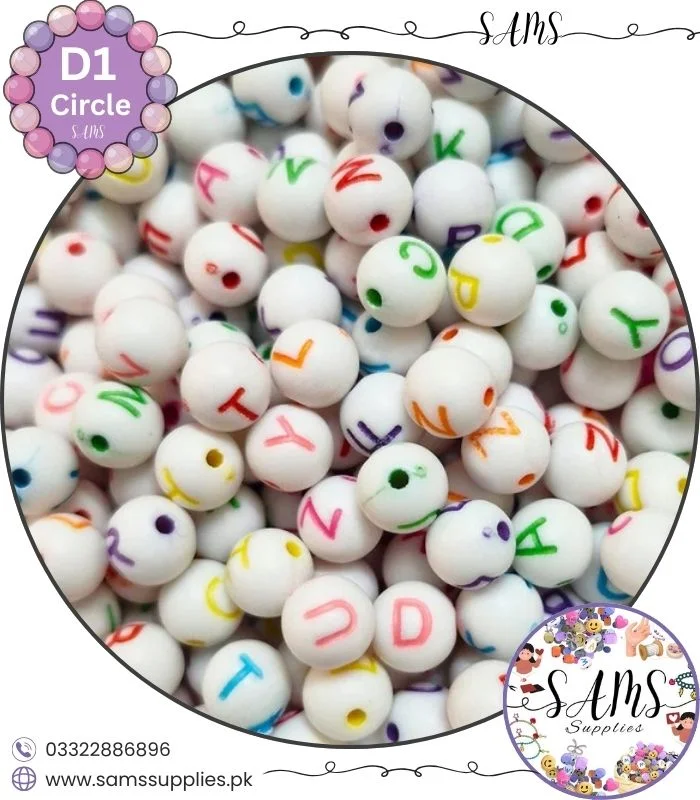 Circle Multicolor Alphabet Letter Beads White Background For Jewelry Making, Bracelet Making Accessories Buy Online in Pakistan at SAMS SUPPLIES in Wholesale Prices
