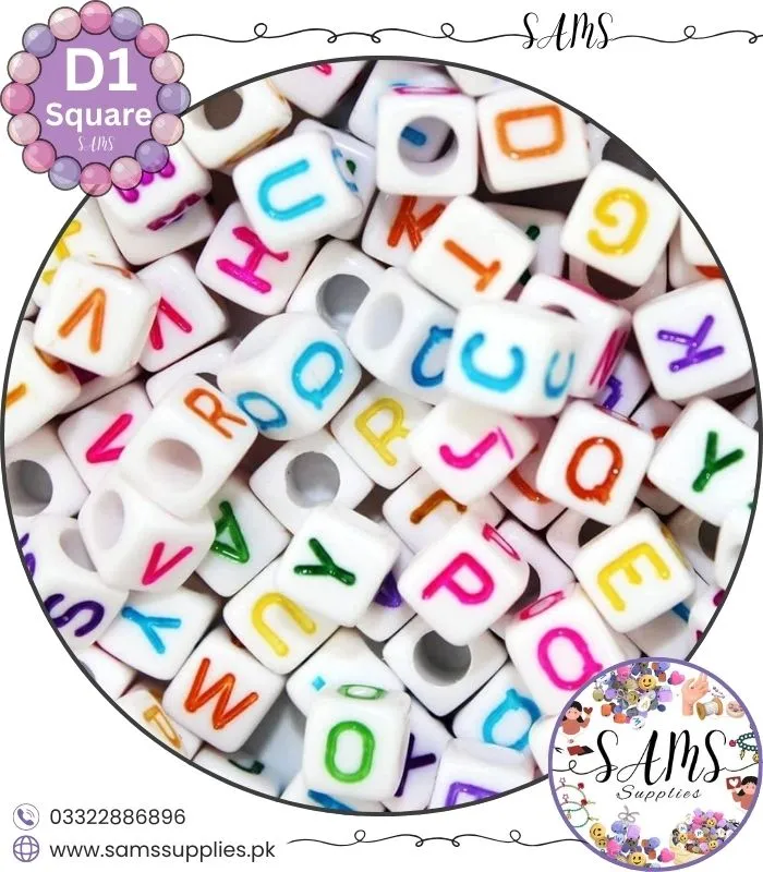 Square Multicolor Alphabet Letter Beads White Background For Jewelry Making, Bracelet Making Accessories Buy Online in Pakistan at SAMS SUPPLIES in Wholesale Prices.
