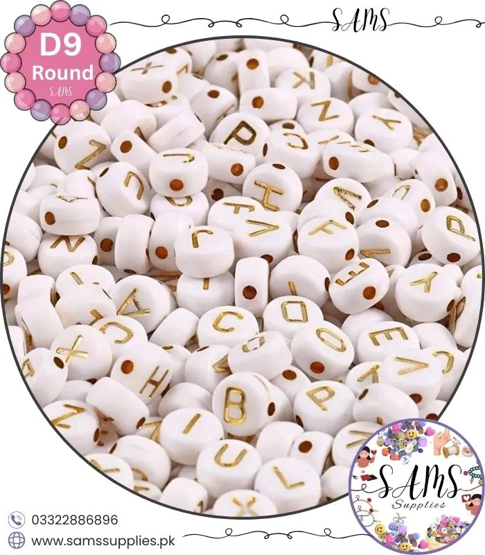 Round Golden Alphabet Letter Beads White Background For Jewelry Making, Bracelet Making Accessories Buy Online in Pakistan at SAMS SUPPLIES in Wholesale Prices