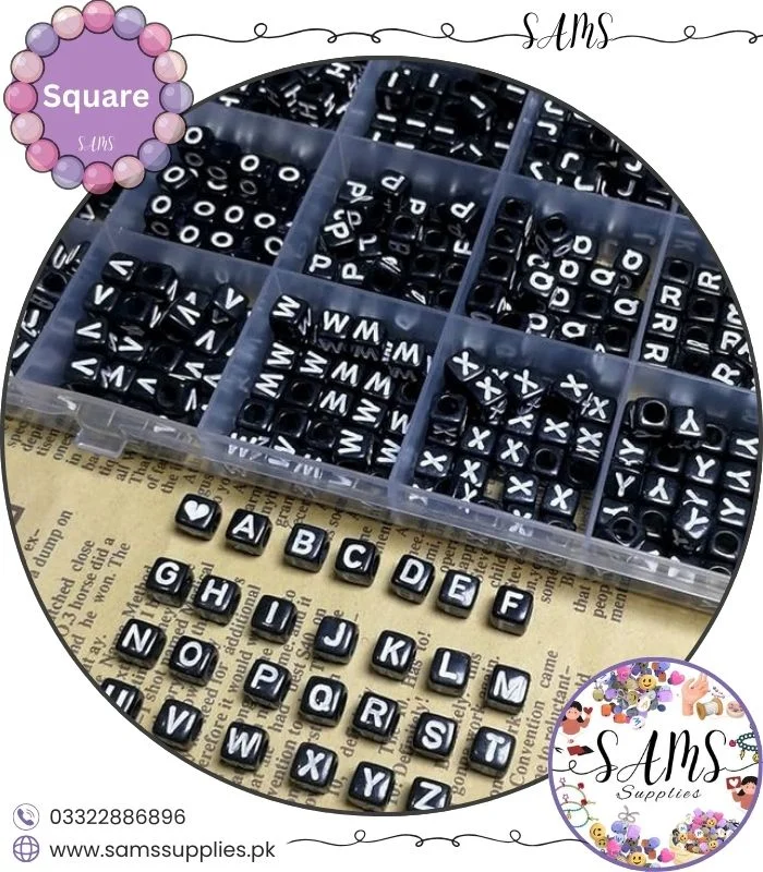 Square Custom Alphabet Letters From A to Z Letter Beads For Jewelry Making, Bracelet Making Accessories Buy Online in Pakistan at SAMS SUPPLIES in Wholesale Prices