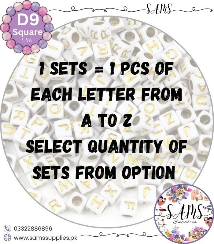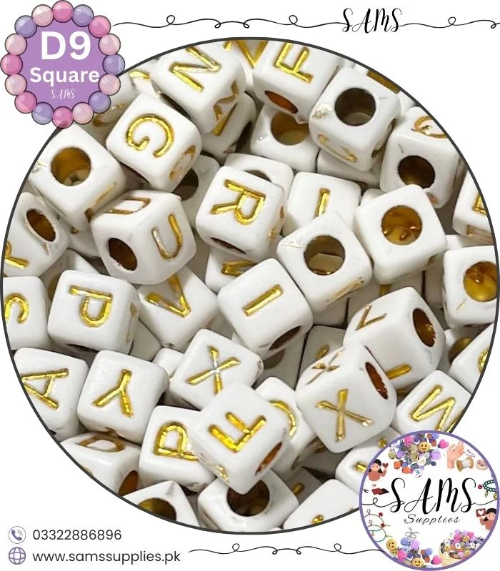 Square Golden Alphabet Letter Beads White Background For Jewelry Making, Bracelet Making Accessories Buy Online in Pakistan at SAMS SUPPLIES in Wholesale Prices