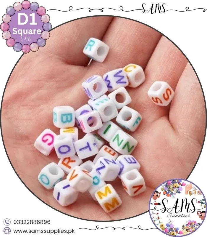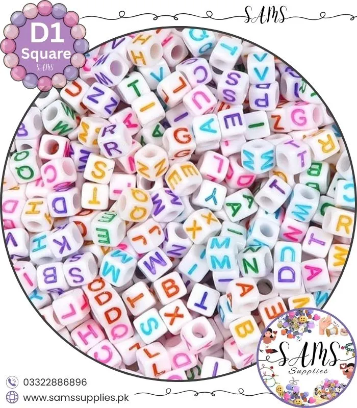 Square Multicolor Alphabet Letter Beads White Background For Jewelry Making, Bracelet Making Accessories Buy Online in Pakistan at SAMS SUPPLIES in Wholesale Prices.