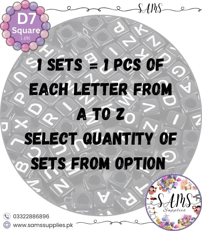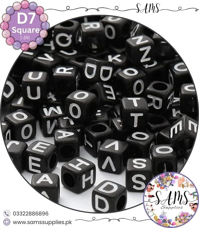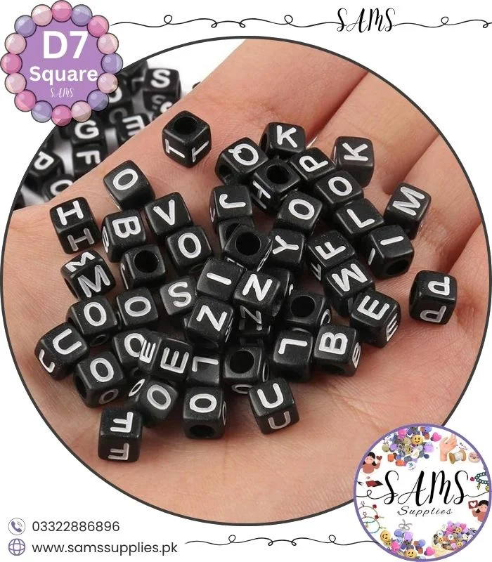Square White Alphabet Letter Beads Black Background For Jewelry Making, Bracelet Making Accessories Buy Online in Pakistan at SAMS SUPPLIES in Wholesale Prices