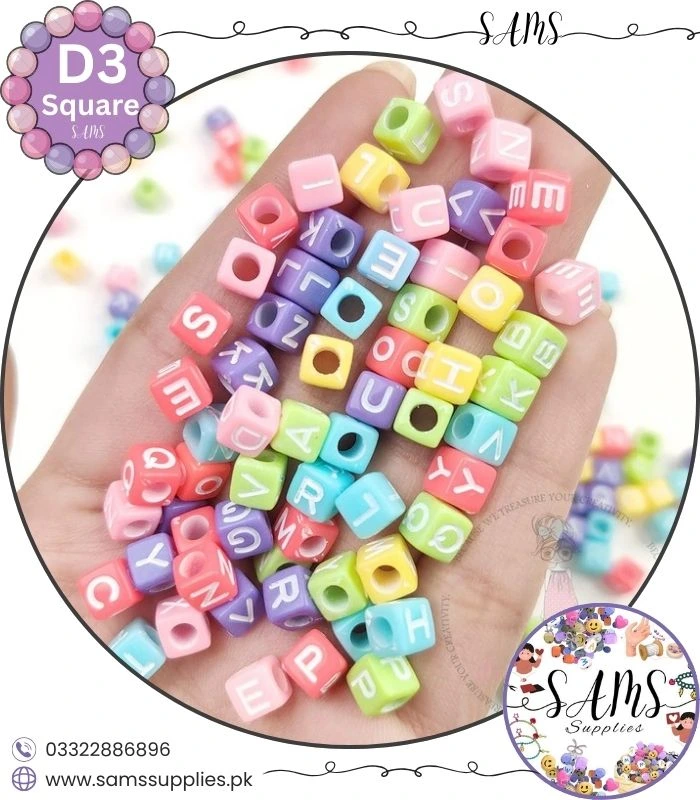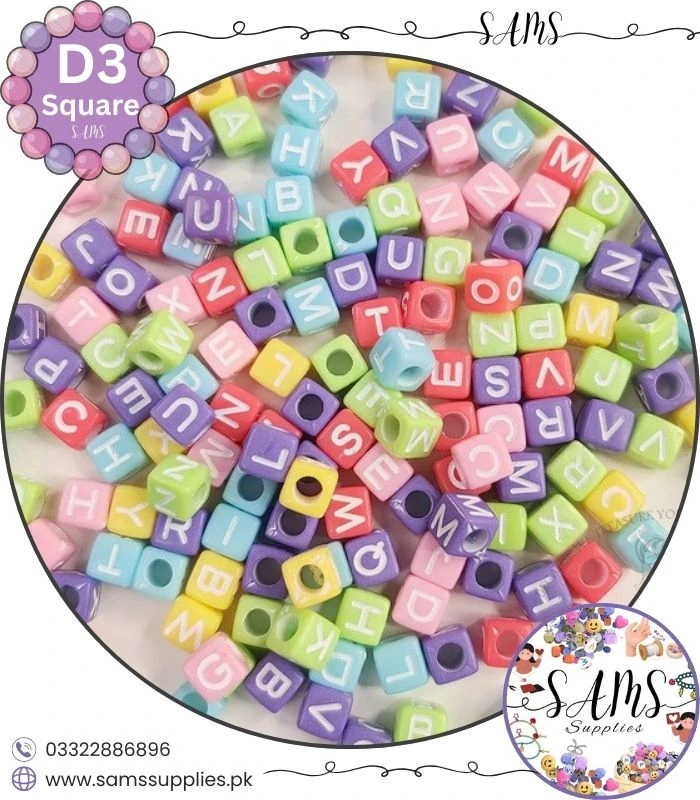 Square White Alphabet Letter Beads Multicolor Background For Jewelry Making, Bracelet Making Accessories Buy Online in Pakistan at SAMS SUPPLIES in Wholesale Prices.