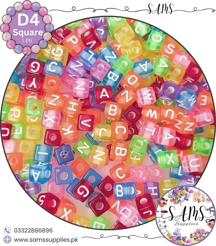 Square White Alphabet Letter Beads Transparent Multicolor Background For Jewelry Making, Bracelet Making Accessories Buy Online in Pakistan at SAMS SUPPLIES in Wholesale Prices